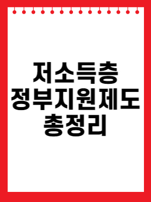 저소득층을 위한 정부지원제도는 생계부터 의료까지 다양한 혜택을 포함합니다.